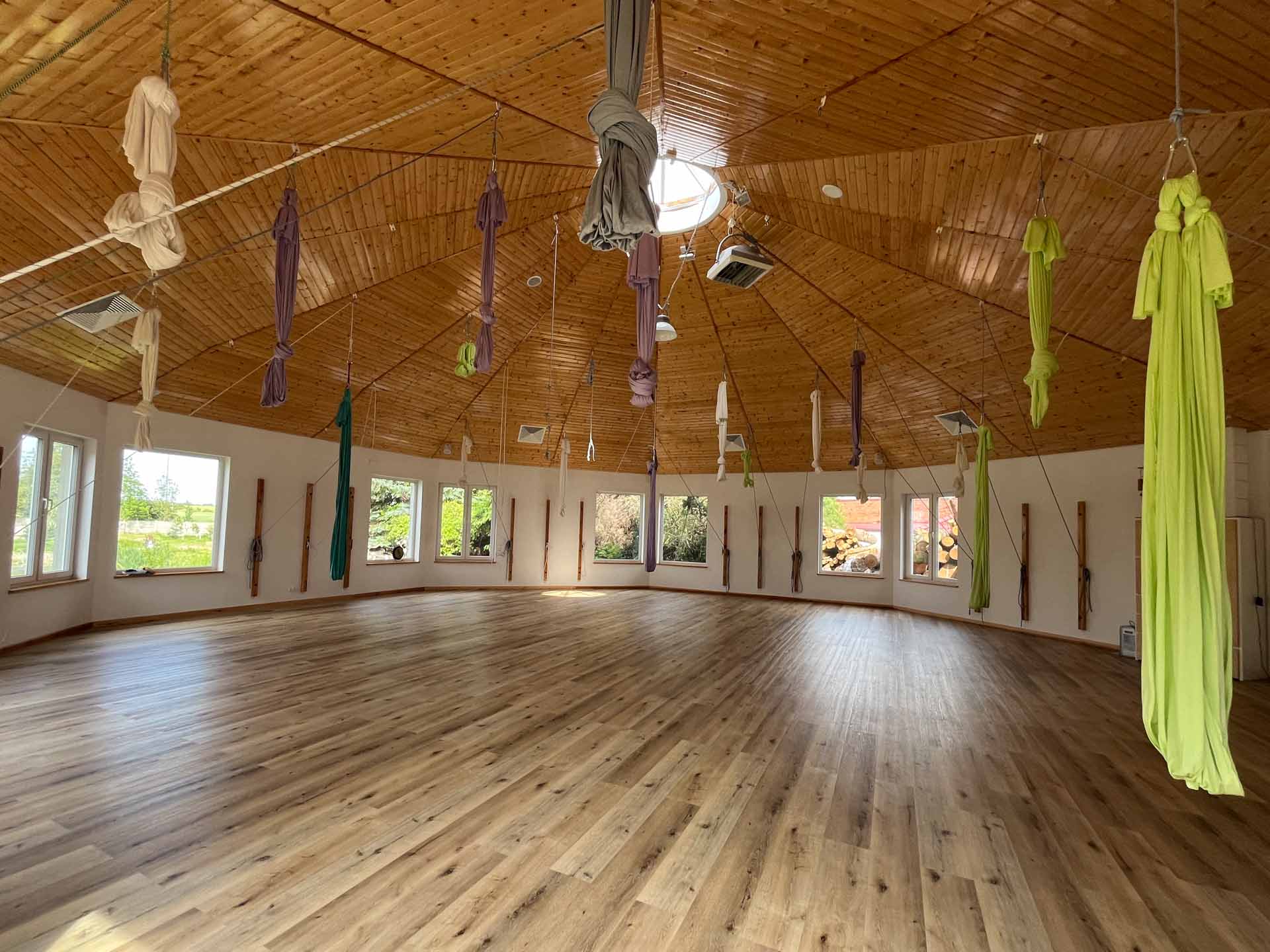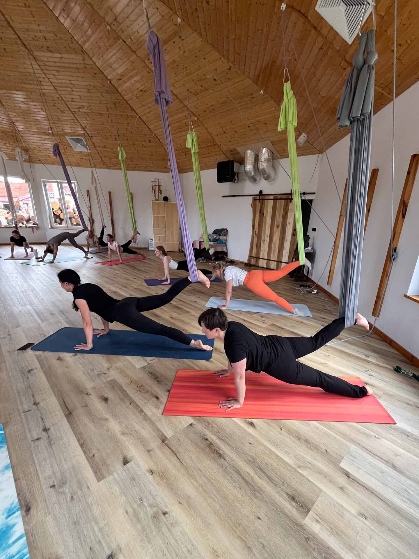 - 7 praktyk jogi, w tym 2 x 2h warsztaty jogi w chustach, na których będziemy uczyć się i poznawać asany w chustach (nie trzeba mieć doświadczenia w praktykowaniu jogi w chustach)