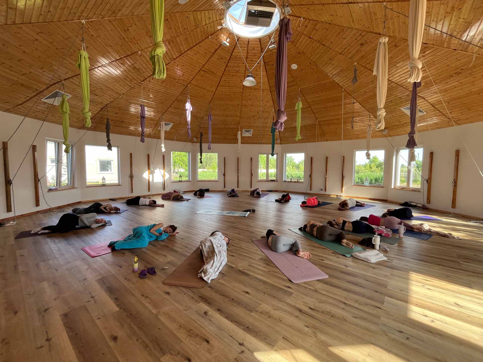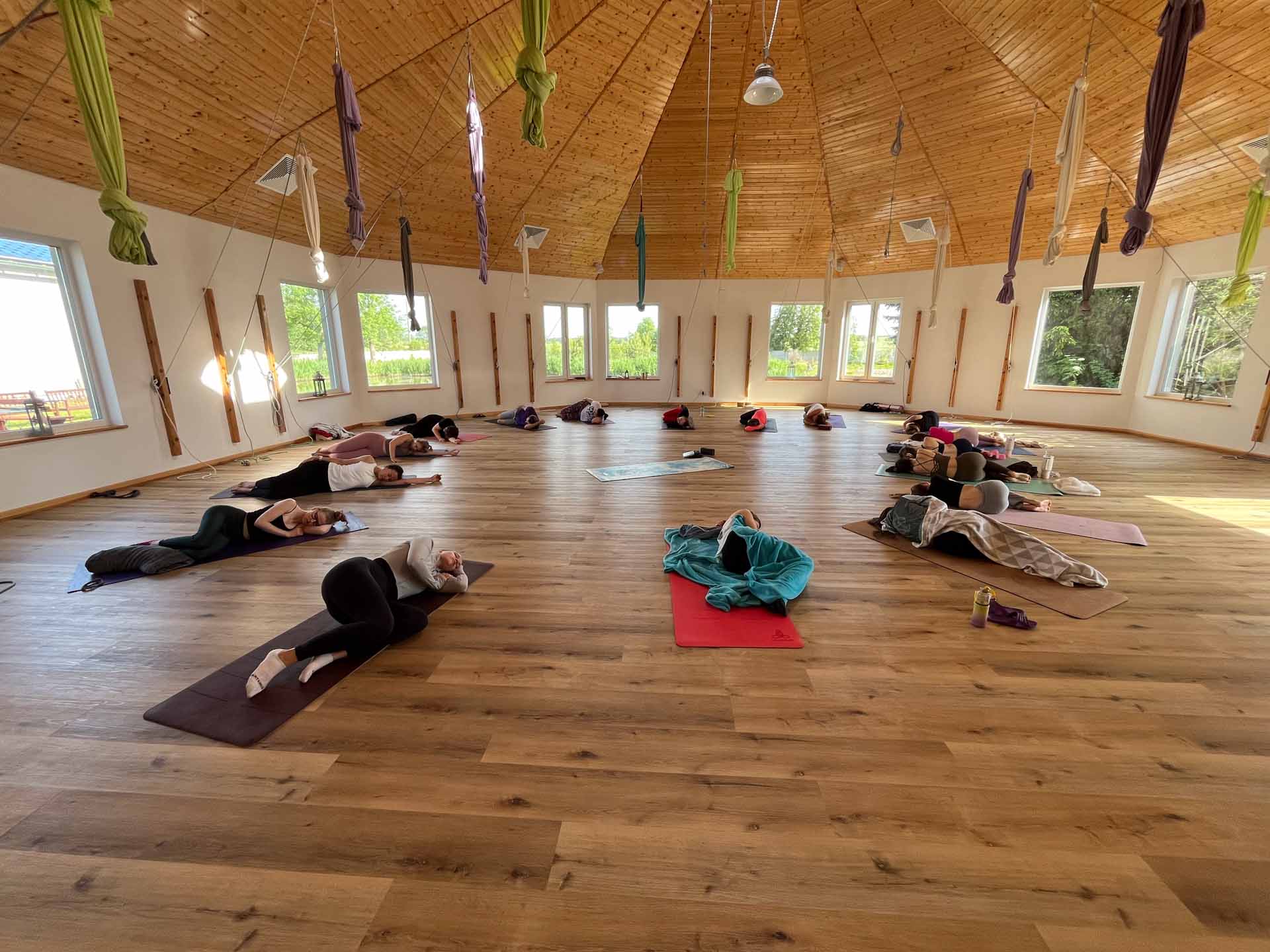 Pierwszego dnia było dużo ostrożności – w ciele, w słowach, nawet w oddechu. Ale z każdą kolejną praktyką – z chustą, z matą, z nidrą – robiło się jakoś lżej. Ciała zaczęły odpuszczać, głowy zwalniać, oczy mięknąć.